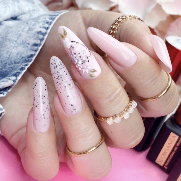 Smalto semipermanente 278 Coconut 10g di Slowianka Nail Trends è un semipermanente quasi bianco, di media densità, iridescente del colore dei trucioli di cocco.