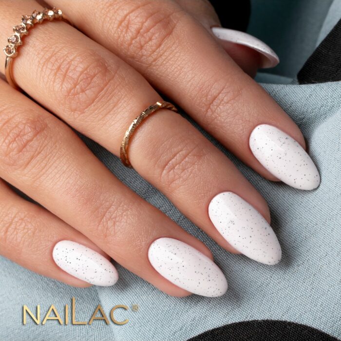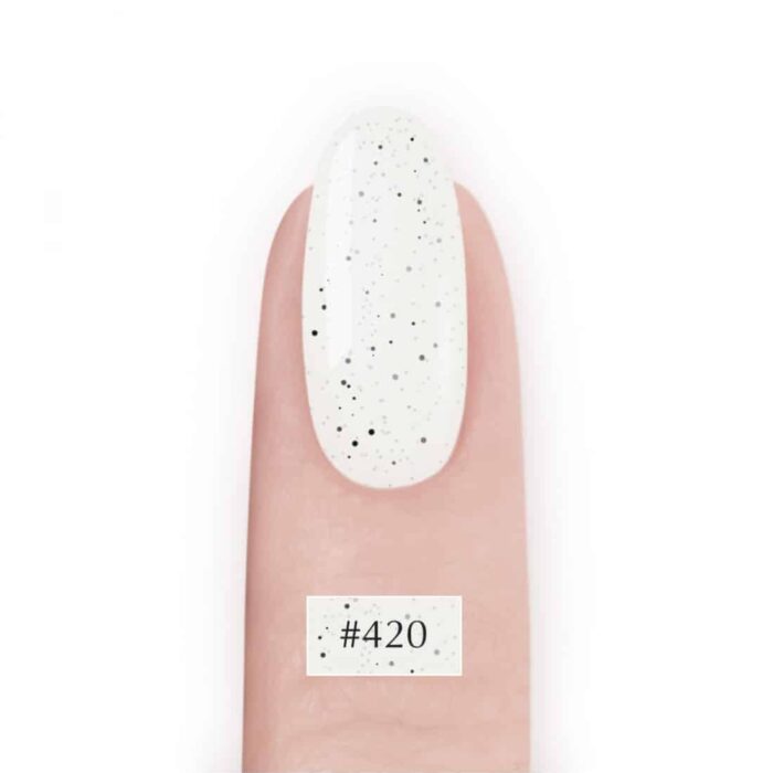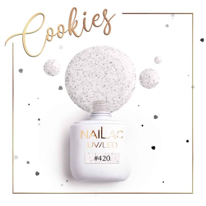 Smalto ibrido NaiLac #420 è un colore insolito dal colore bianco cremoso con l’aggiunta di micro puntini neri che lo rendono divertente e trasforma le mani in un gioco interessante.