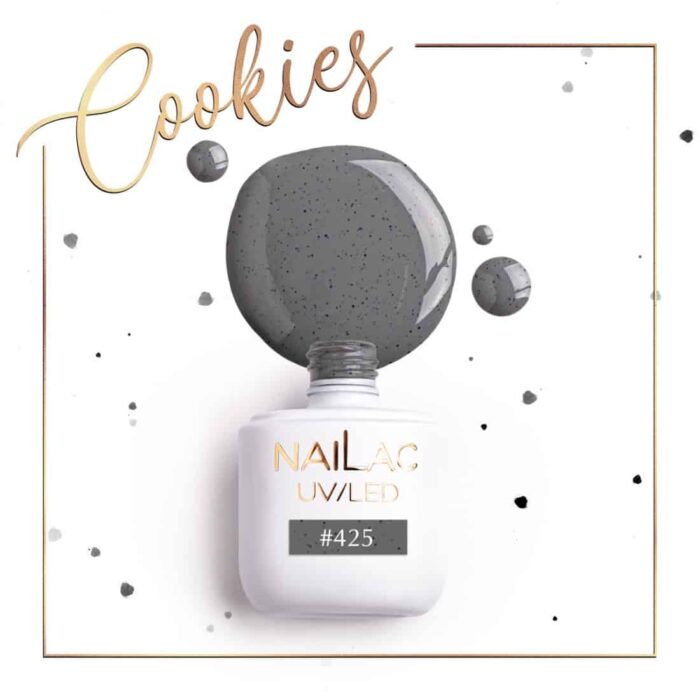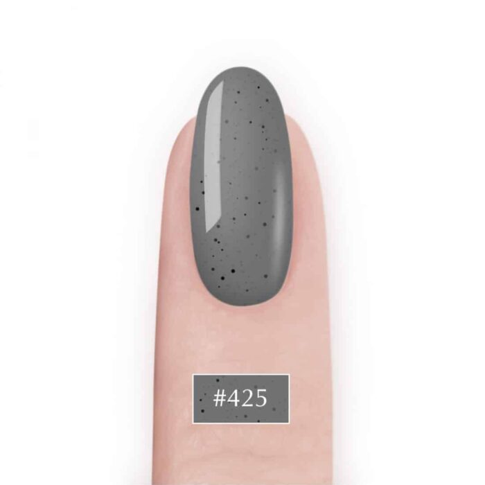 Smalto ibrido NaiLac #425 è un colore insolito dal colore griggio scuro con l’aggiunta di micro puntini neri che spuntano miracolosamente sulla superfice.