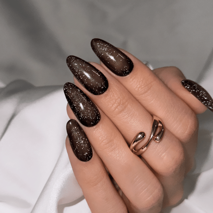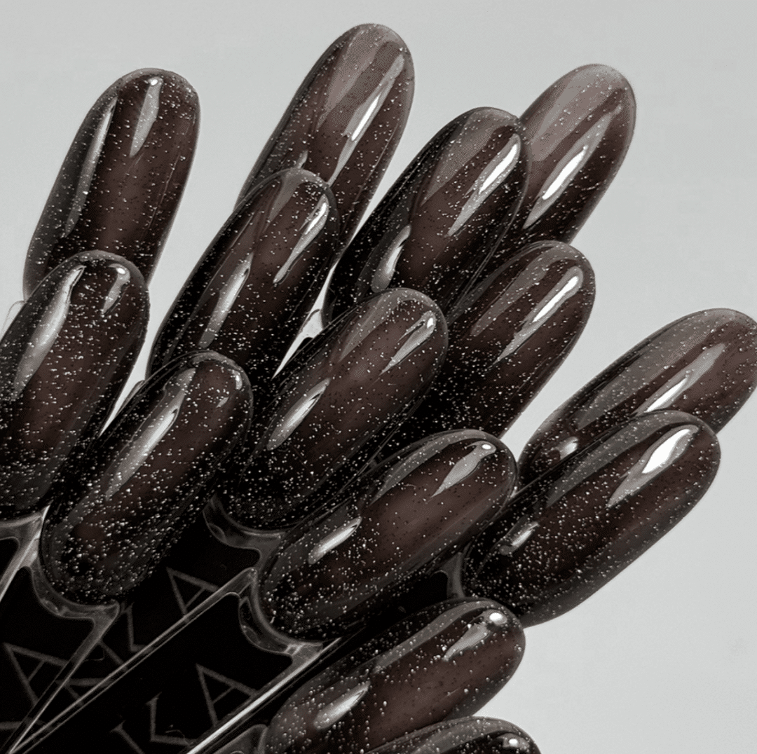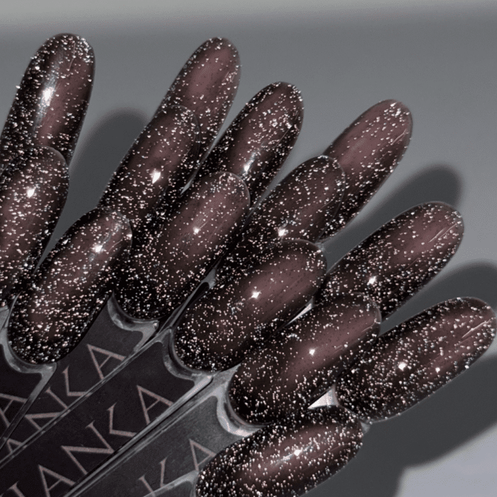La vernice ibrida 504 Flash Silver Fishnet della collezione Wild Vintage è un’offerta unica di Slowianka, senza paragoni con altri marchi. Si tratta di un ibrido nero semitrasparente con mini macchie di argento flash, che conferiscono un sorprendente e delicatissimo effetto scintillante. Una scelta perfetta per l’autunno, che aggiunge un tocco unico alle unghie naturali.