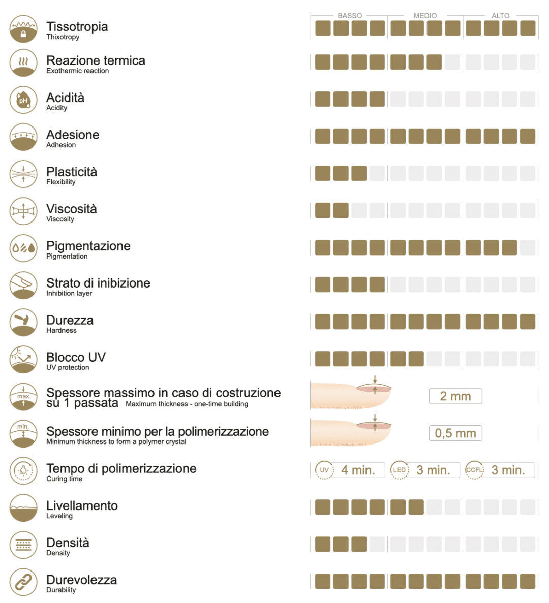 - l’ottima adesione alle unghie naturali richiede un ulteriore strato di base per una migliore coesione con la lamina ungueale,