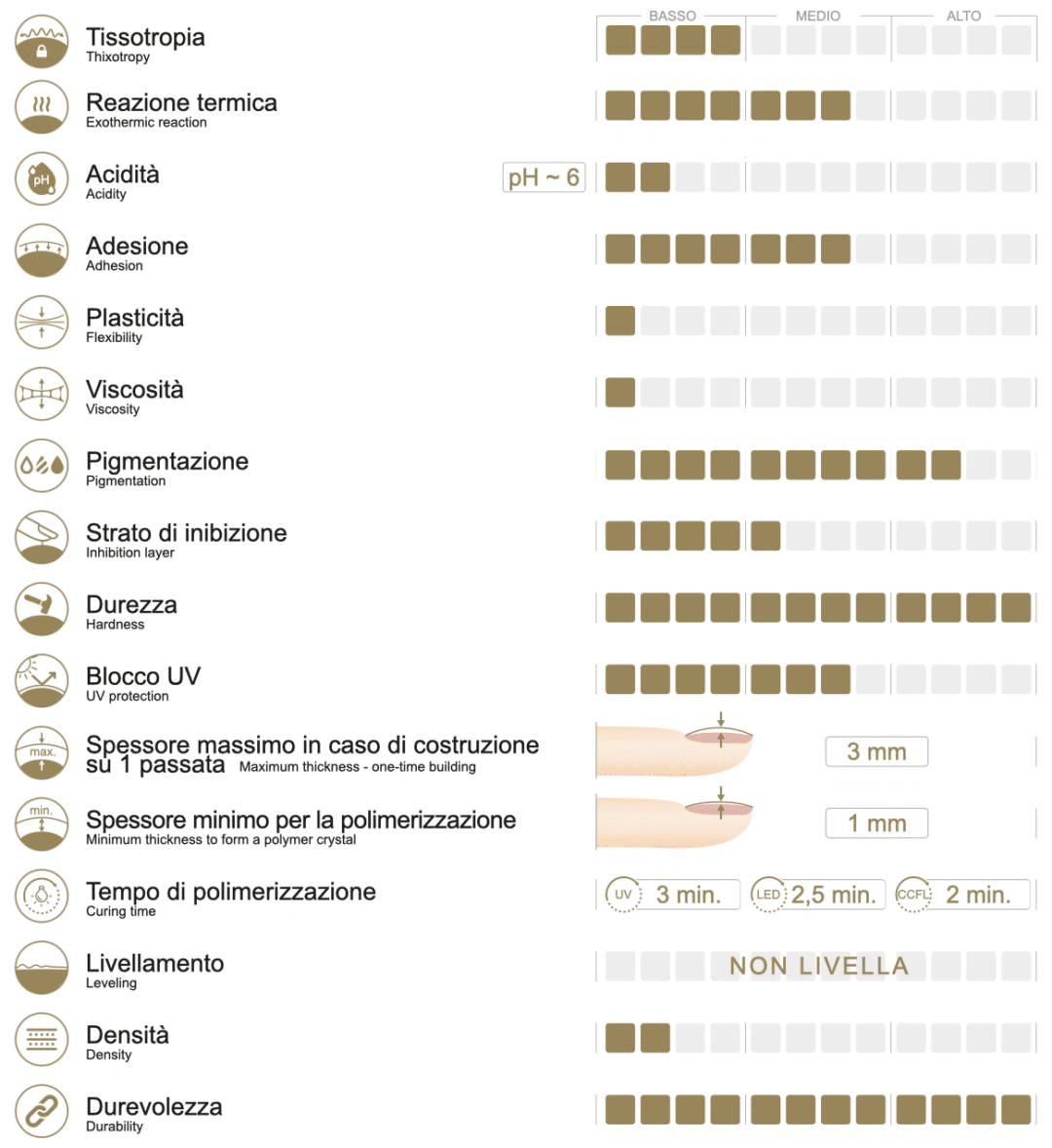 • Il gel ha una bassa viscosità, è cremoso e leggero al tatto, il che lo rende facile da lavorare.