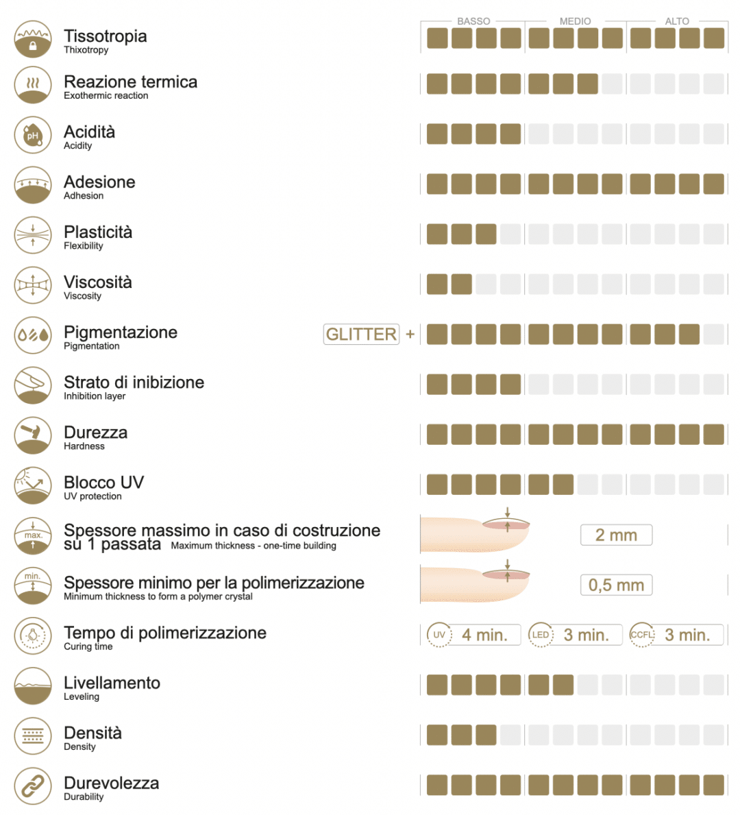 Polimerizzazione: 3 minuti in lampada LED | 4 minuti in lampada UV