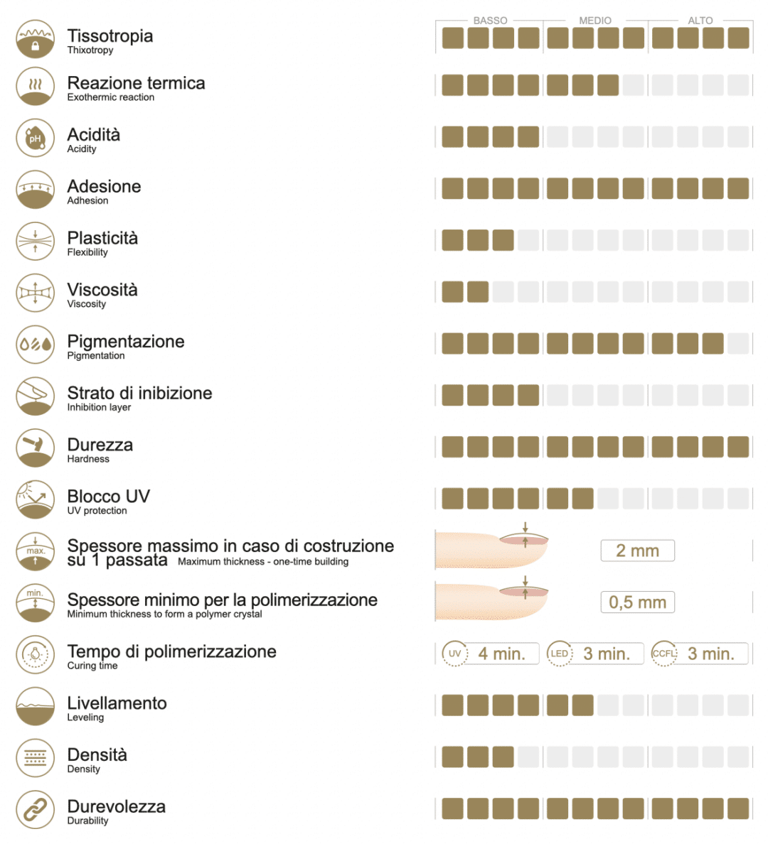 - l’ottima adesione alle unghie naturali richiede un ulteriore strato di base per una migliore coesione con la lamina ungueale,