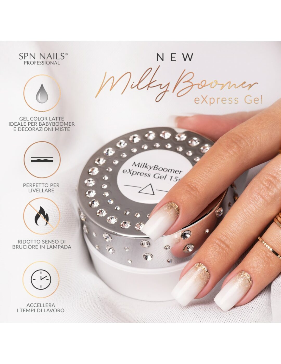 MilkyBoomer eXpress Gel è un gel costruttore color latte, progettato appositamente per la ricostruzione del