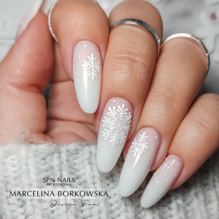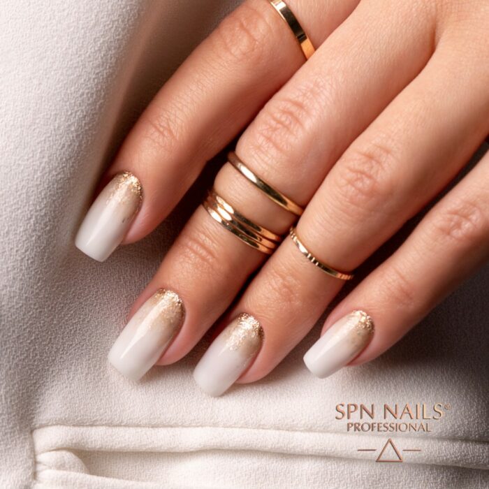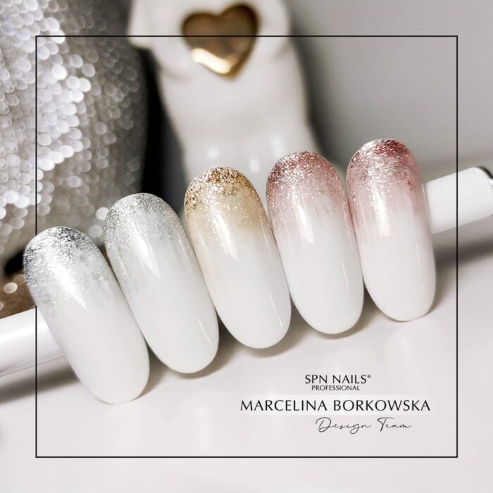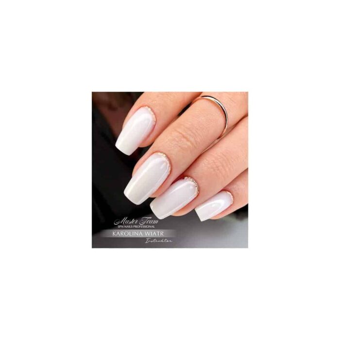 Lavorare con lui è veloce e piacevole, e per i nostri clienti praticamente indolore, grazie alla ridotta sensazione di bruciore. Il gel è resistente ai danni meccanici e non crea bolle d’aria. Ha una bella sfumatura lattiginosa che non ingiallisce e ha un bell’aspetto nelle creazioni con l’aggiunta di glitter o con elementi incorporati lucicanti.