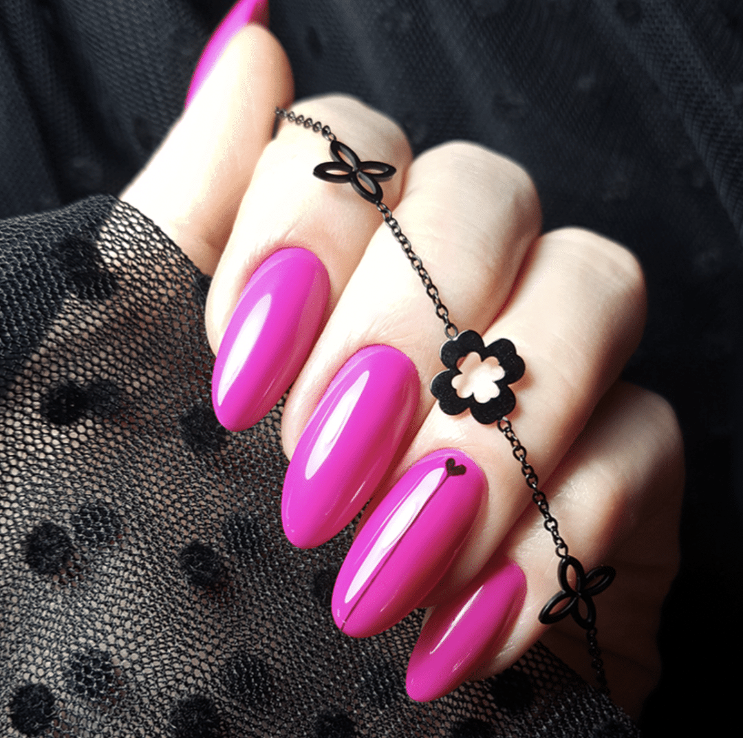 Un semipermanente dalla consistenza mediamente densa e cremosa, che si livella magnificamente e si stende sull’unghia senza creare striature. Un prodotto altamente pigmentato che copre anche con una sola passata.
