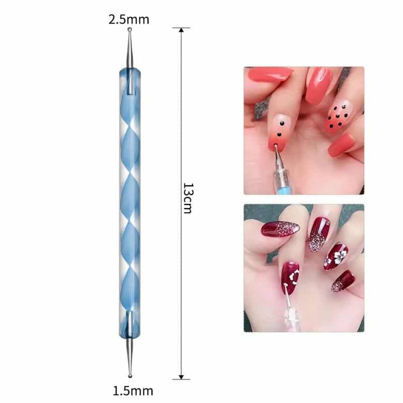 La sonda per unghie è uno strumento universale che ti permetterà di realizzare moltissime decorazioni sulle tue unghie. Ha due punte rotonde , grazie alle quali puoi dipingere facilmente punti e altre piccole forme. Sarà anche ottimo per mescolare smalti o altri prodotti per unghie e per applicare piccole decorazioni sulle unghie. Lo strumento è facile da pulire: basta pulirlo con un batuffolo di cotone imbevuto di detergente dopo ogni lavoro e la tua sonda ti servirà a lungo.