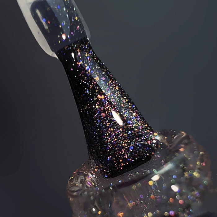 Un top bestseller che crea un effetto di brillantezza multicolore unico sulle unghie. È bellissimo sia sui colori chiari che su quelli scuri. Le unghie brillano meravigliosamente in oro, blu, celeste, rosa e viola, e il luccichio è molto delicato e sottile. La perfetta saturazione delle particelle non crea spessore sulle unghie quando viene applicato. Funziona meravigliosamente con semipermanenti, gel, acrygel ed acrilici. Valorizza meravigliosamente Baby Boomer, French ed Ombre.