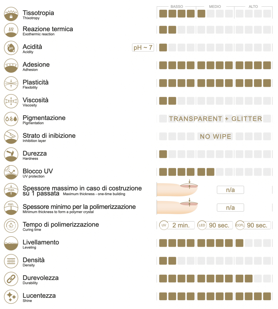 Tempo di polimerizzazione: 90-120 secondi in lampada LED da 48 W di Slowianka o 3-4 minuti in lampada UV (il tempo può variare a seconda delle condizioni e della tensione della lampada).